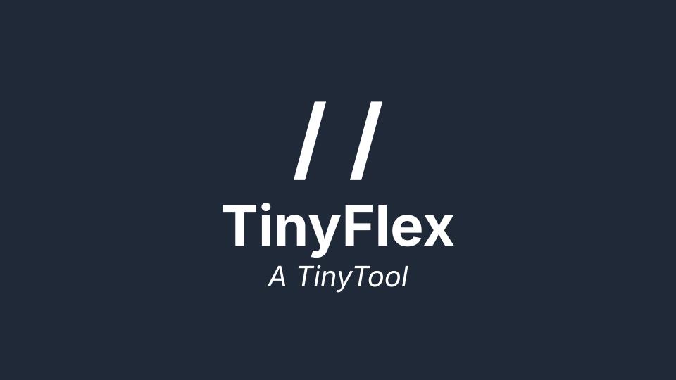 TinyFlex is an interactive Flexbox layout simulator. Users can toggle specific parent container properties—including justify-content, align-items, and flex-direction—to visualise element behaviour in real-time. The tool generates the exact CSS block needed to replicate the displayed layout, serving as both a debugging tool and a code generator for flex container alignment logic.